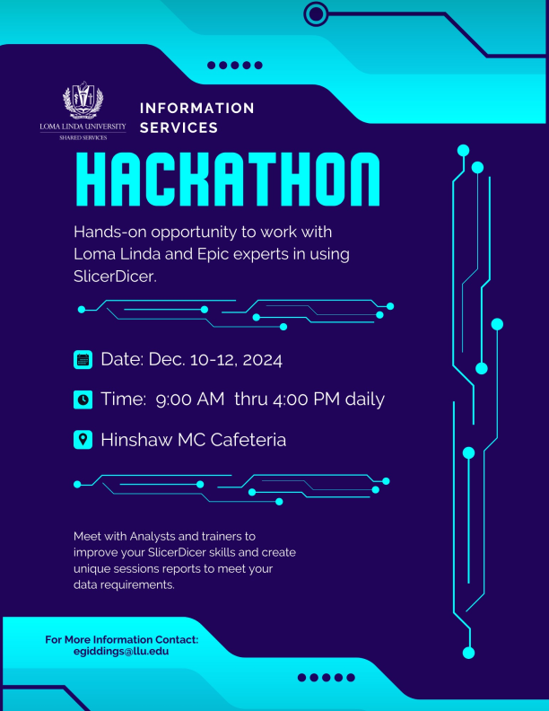 Hands on opportunity to work with Loma Linda & Epic experts in using SlicerDicer